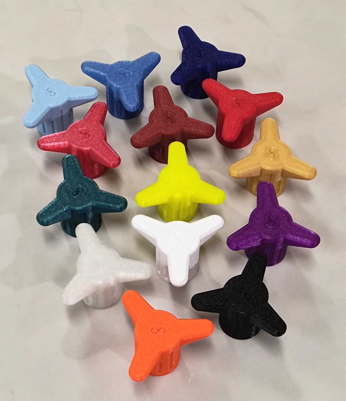 At this time I have varying inventory of the parts colours in the photo at left. Choose one, or a mix! Please note that some are in limited supply and may not be continued.