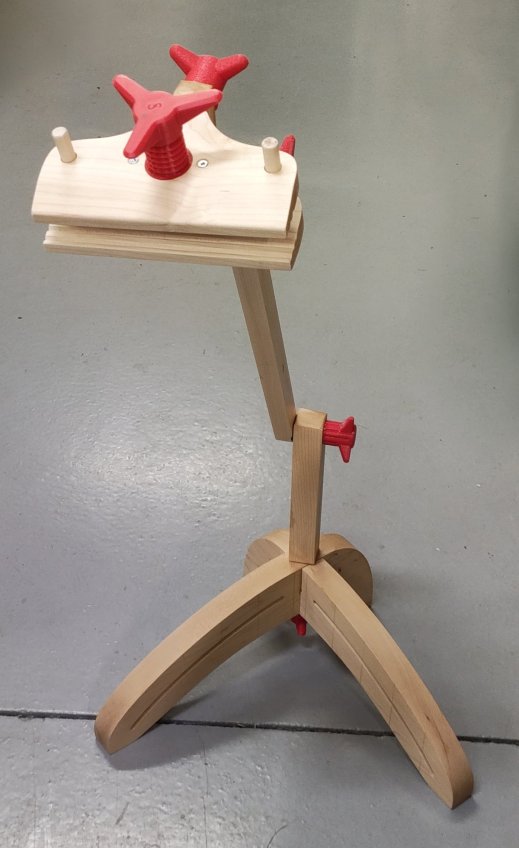 A versatile floor or table stand with height of up to 900 mm (36") and width from 400 mm (16") to 900 mm (36"). Easily disassembled/assembled with labelled parts for quick setup and easy transport. Complete with 2 robust wooden clamps.